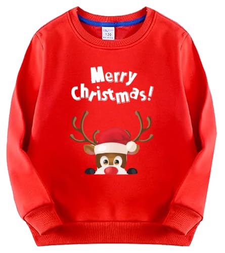 Generic - سويت شيرت بطبعة حيوان الرنة للكريسماس، بلوفر قطن احمر للعطلات، تصميم عيد ميلاد سعيد، سترة احتفالية الشتاء مقاس (L)