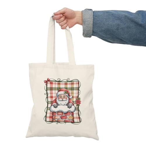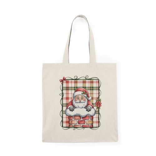Generic - حقيبة قماش بسحاب بتصميم بابا نويل للكريسماس – شنطة قطنية احتفالية صديقة للبيئة، مثالية للهدايا والتسوق في موسم عيد الميلاد Canvas Tote Bag With Zipper-993
