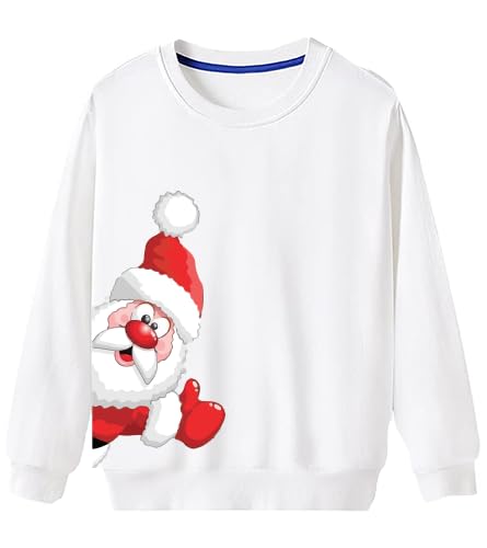 Generic - سويت شيرت بطبعة سانتا كلوز للكريسماس، بلوفر قطن ابيض باكمام طويلة للعطلات الشتوية مقاس (S)