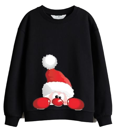 Generic - سويت شيرت قصير بتصميم قبعة سانتا للكريسماس، مزيج من القطن الاسود، بلوفر شتوي بنمط عطلة مقاس (M)