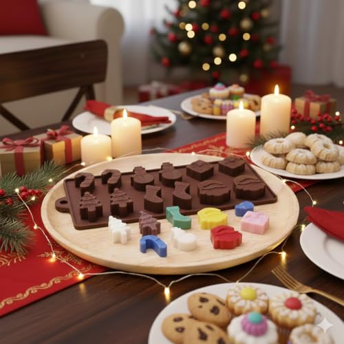 - قالب سيليكون: قالب شوكولاتة براوني مكون من 12 تجويف (21 × 10 سم) وقالب مكون من 6 تجاويف متعددة الألوان/قالب (25 × 17 سم) بتصميمات احتفالية للكريسماس، اختر تصميمك المفضل