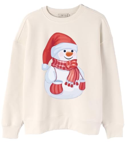 Generic - سويت شيرت بتصميم رجل الثلج للكريسماس، بلوفر قطني بيج مع طباعة عطلة الشتاء، كم طويل ورقبة دائرية بدون طوق مقاس (6-9 سنوات)