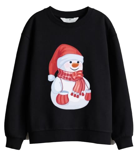 Generic - سويت شيرت بتصميم رجل الثلج للكريسماس، مزيج من القطن الاسود، بلوفر بنمط عطلة الشتاء مع طباعة احتفالية مقاس (M)