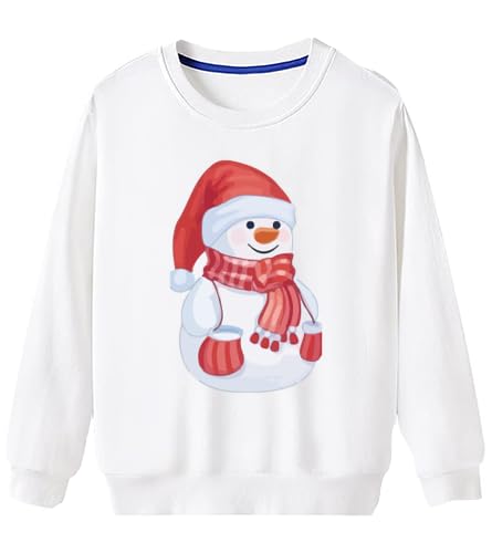 Generic - سويت شيرت بتصميم رجل الثلج للكريسماس، بلوفر قطن ابيض باكمام طويلة، مقاس مناسب للعطلات الشتوية (9-12 سنة)