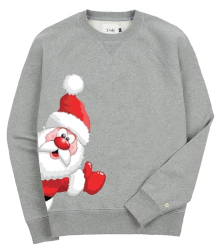 Generic - سويت شيرت للكريسماس، بلوفر من مزيج القطن الرمادي بنمط سانتا كلوز، طباعة جرافيك بطابع العطلات، كم طويل ورقبة دائرية بدون طوق مقاس (XL)