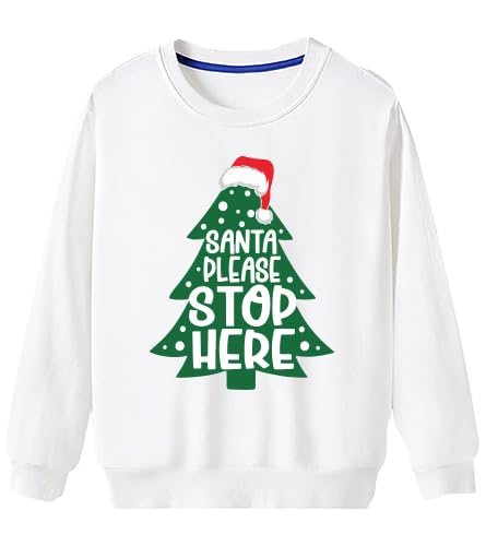 Generic - سويت شيرت للكريسماس بتصميم شجرة سانتا الرجاء التوقف هنا، بلوفر قطن ابيض للعطلات مقاس (M)