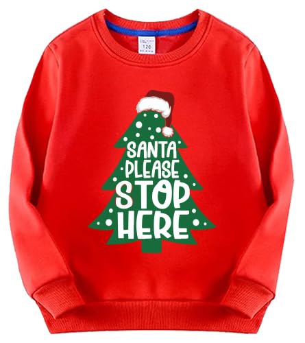 Generic - سويت شيرت للكريسماس بتصميم سانتا ستوب هير، بلوفر قطني احمر، سترة شتوية بطابع العطلات مقاس (S)