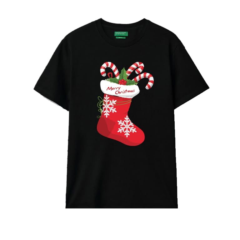 Generic - تي شيرت للكريسماس، مصنوع من القطن الاسود، بتصميم قصب حلوى احتفالي وجورب، مقاس (3-6 سنوات)