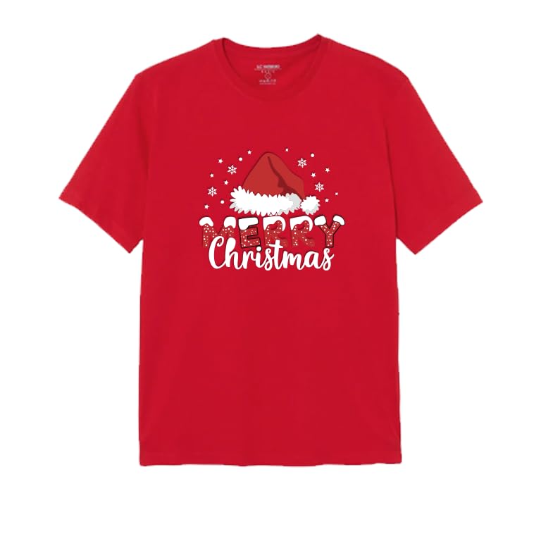 Generic - تيشرت قطن للكريسماس، تيشرت بطبعة رسومات مع تصميم قبعة سانتا وندفة الثلج بطابع احتفالات الشتاء، المقاس من 3 إلى 6 سنوات - أحمر
