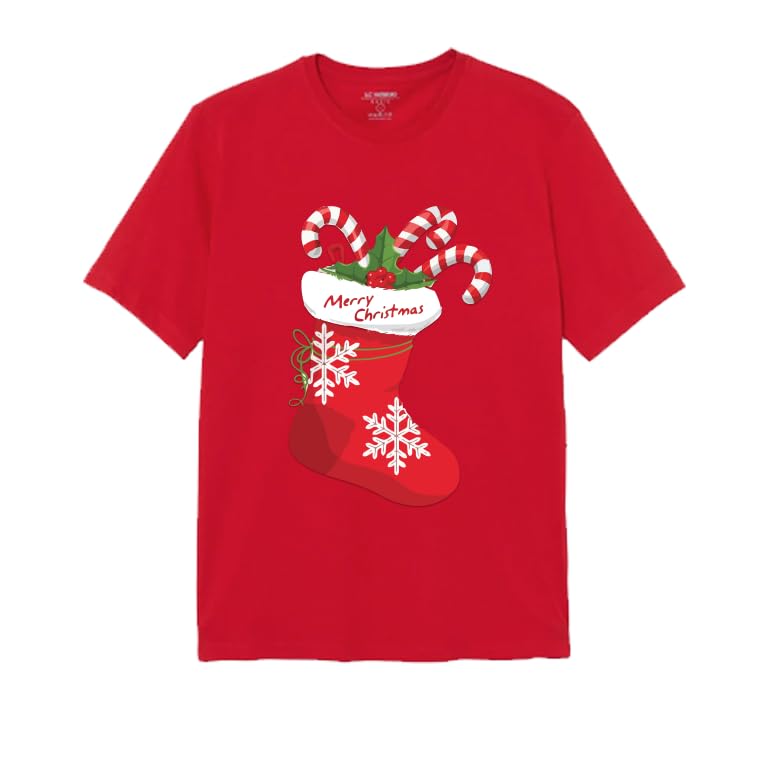 Generic - تي شيرت عيد الميلاد، تي شيرت قطن احمر للعطلات مع عصا حلوى وتصميم جورب مقاس (6-9 سنوات)