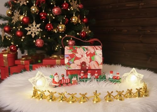 Generic - قطار كريسماس مع بابا نويل، أجراس ذهبية صغيرة، شمعتين نجمة إلكترونية، حقيبة قطيفة بنقشة زهور