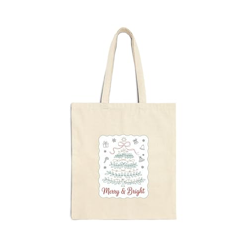 Generic - حقيبة قماش بسحاب بتصميم شجر الكريسماس لعيد الميلاد – شنطة قطنية احتفالية صديقة للبيئة، مثالية للهدايا والتسوق في موسم عيد الميلاد Canvas Tote Bag With Zipper-957