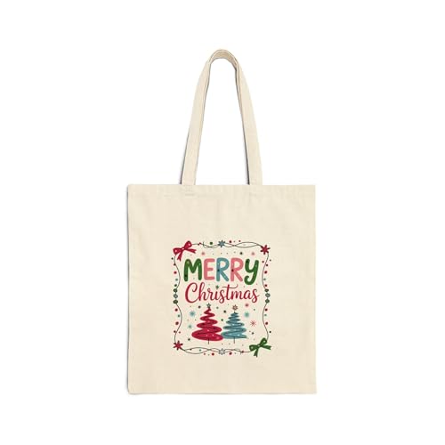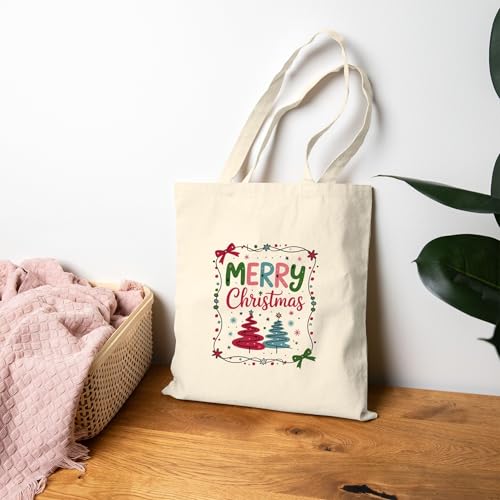 Generic - حقيبة قماش بسحاب بتصميم شجر الكريسماس – شنطة قطنية احتفالية صديقة للبيئة، مثالية للهدايا والتسوق في موسم عيد الميلاد Canvas Tote Bag With Zipper-963