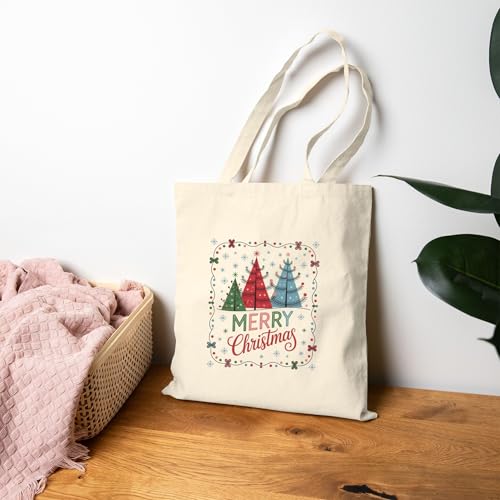 Generic - حقيبة قماش بسحاب بتصميم شجر الكريسماس – شنطة قطنية احتفالية صديقة للبيئة، مثالية للهدايا والتسوق في موسم عيد الميلاد Canvas Tote Bag With Zipper-979