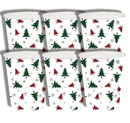 Generic - أكواب ورقية بنقشة شجرة الكريسماس، أدوات مائدة حفلات العطلات للاستعمال مرة واحدة، تصميم أشجار صنوبر خضراء وحمراء، خلفية بيضاء