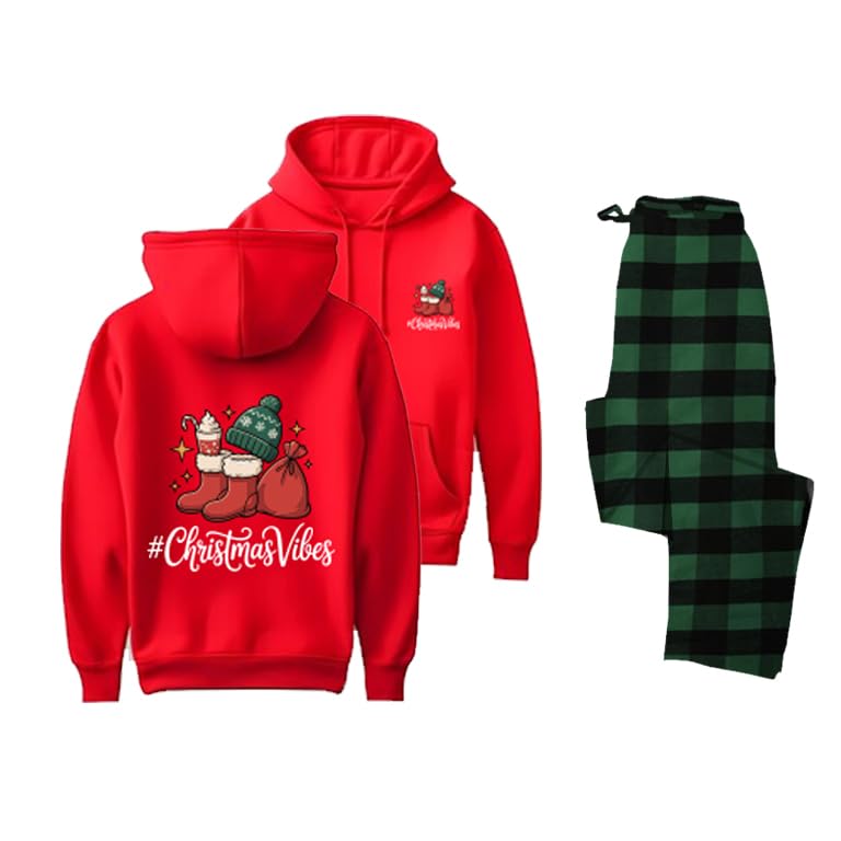 Generic - طقم هودي وسروال منقوش من كريسماس فايبس، هودي احمر مع سروال بنمط مربعات خضراء، مقاس مناسب للعطلات (مقاس M)