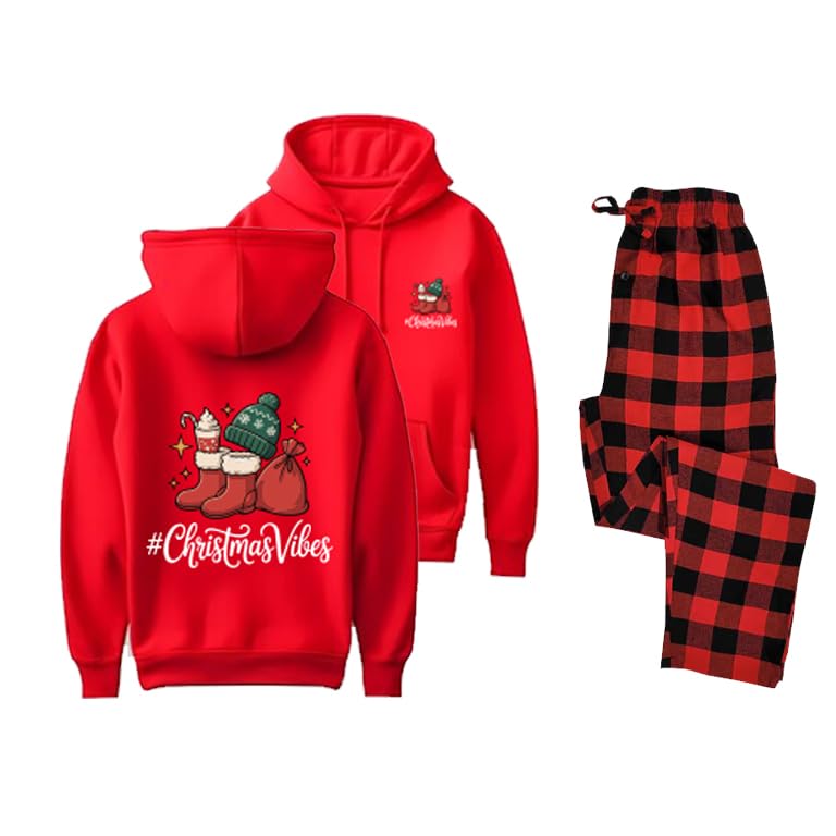 Generic - طقم بيجامة كريسماس فايبس، هودي احمر مع بنطلون منقوش، ملابس نوم بطابع العطلات مقاس (M)