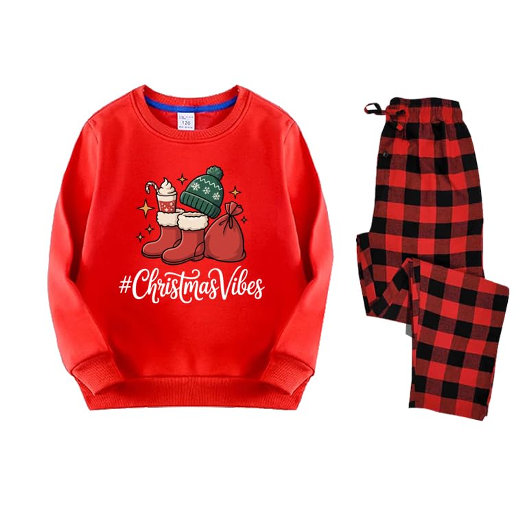Generic - طقم بيجامة كريسماس فايبس، سويت شيرت احمر مع بنطلون منقوش، ملابس نوم بطابع العطلات، مقاس (3XL)