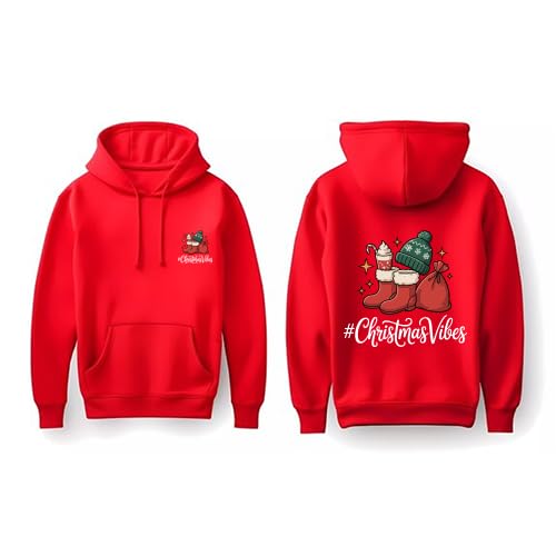 Generic - سويت شيرت بغطاء رأس بلون احمر من كريسماس فايبس، تصميم احتفالي للعطلات، مزيج من القطن مع طباعة جرافيك مقاس (XL)