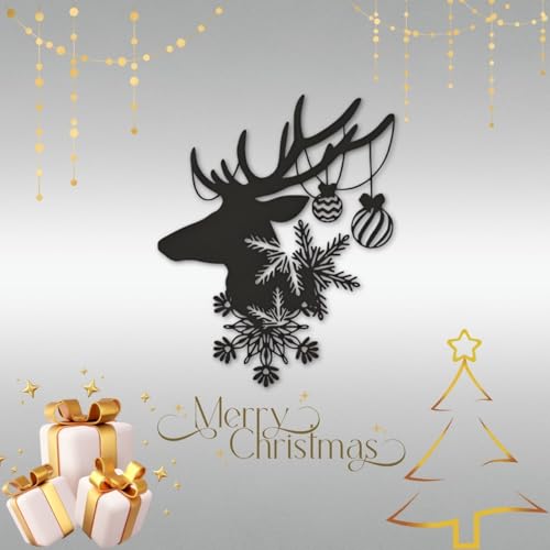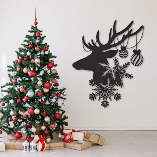 Generic - ديكور حائط للكريسماس، بنمط حيوان الرنة من خشب ليفي متوسط الكثافة أسود مع ندفات ثلج، تصميم مناسب لعطلة الشتاء (مقاس متوسط)