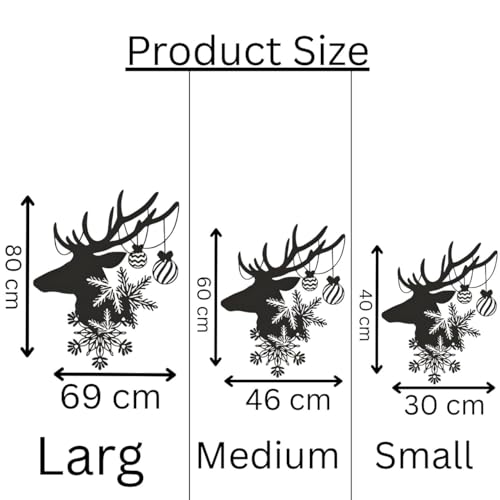 - الأبعاد: متوفر بثلاثة مقاسات - كبير (69 سم)، ومتوسط (46 سم)، وصغير (30 سم)، تتميز التصميمات الفنية الجدارية بتصميم حيوان الرنة.
