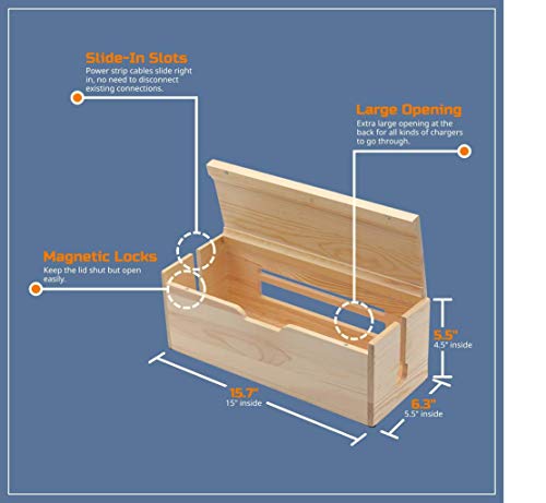 Christolab - صندوق تنظيم الكابلات من الخشب الصلب، تصميم صديق للبيئة بلون طبيعي ومنظم لأسلاك الطاقة من كريستولاب