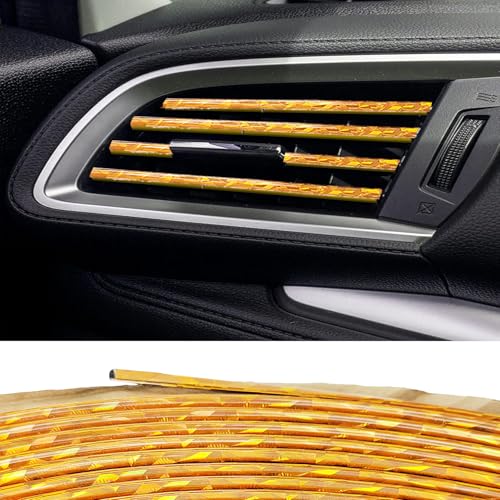 Generic - شريط تزيين منفذ مكيف الهواء للسيارة من الكروم بتصميم مقاوم للماء وقابل للانحناء لتزيين منفذ التهوية شريط تزيين مرن مثالية للديكور الداخلي للسيارة - طول 3 متر - (لون ذهبى لامع عاكس) - من كابر تريد