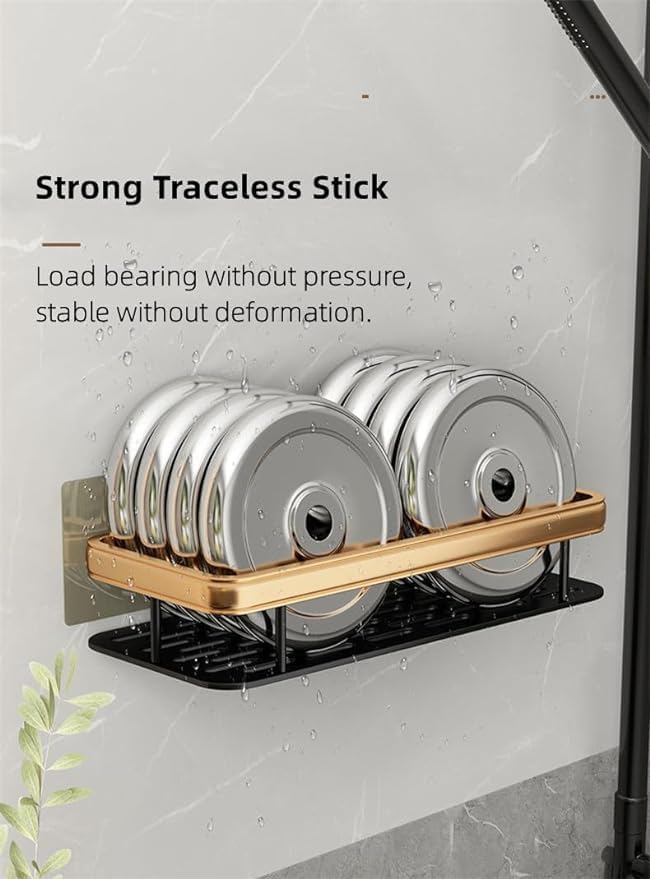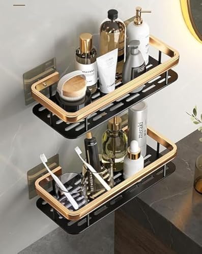 Generic - رف دش للحمام بلمسة نهائية من الكروم مع رف ومقبض، من الستانلس ستيل يثبت على الحائط، أسود ذهبي