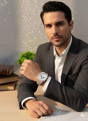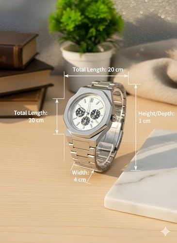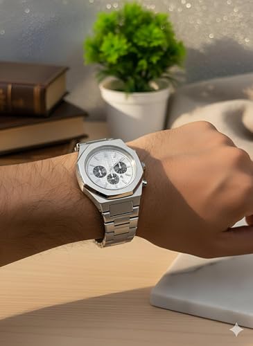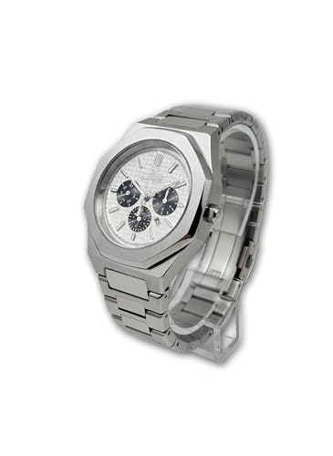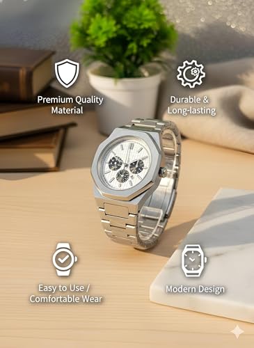 Generic - ساعة كرونوغراف - ستانلس ستيل فضي للرجال مع مينا ابيض مزخرف تتميز بثلاثة أقراص فرعية في اطار ثماني الاضلاع