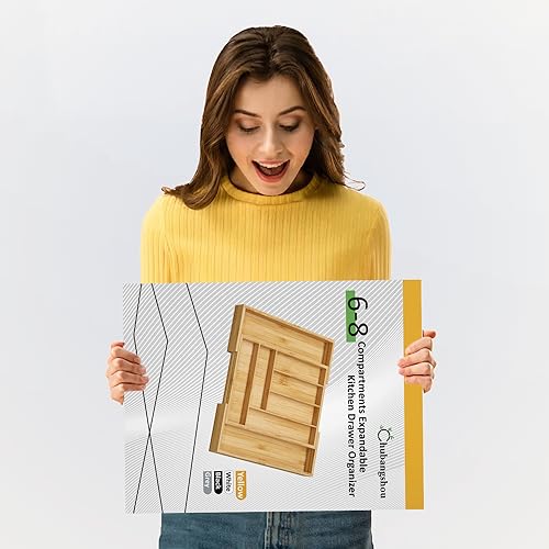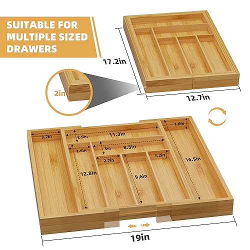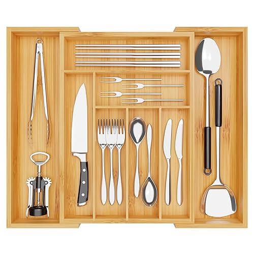 Chubangshou - منظم ادراج ادوات المائدة الفضية من تشوبانجشو لادراج المطبخ صينية مائدة قابلة للتوسيع الخيزران للاواني والسكاكين وادوات الطبخ 8 اقسام طبيعي
