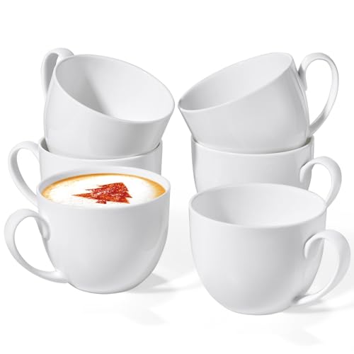 Chulan - شولان اكواب قهوة من بون تشاينا 22 اونصة خفيفة الوزن الخزف الصيني سيراميك بيضاء كبيرة للافطار طقم سلطة بورسلين للشاي .