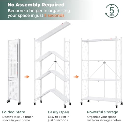 - 【رف للتنقل الفوري】يتميز هذا الرف المصمم مسبقًا بإعداد سلس في ثوانٍ معدودة، مما يضمن التركيب بدون مجهود. تحرك بسلاسة مع العجلات الأربع وقم بطيها للتخزين المدمج عند عدم الاستخدام.