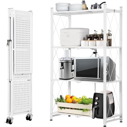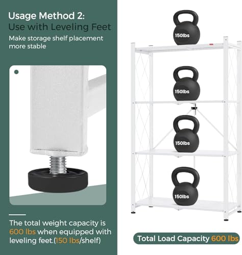 Chulovs - ارفف تخزين محمولة بتصميم دوار، هيكل معدني شديد التحمل للحصول على أقصى سعة، مثالية للمرآب والمطبخ والقبو (ابيض، 4 طبقات)، من شولوفس