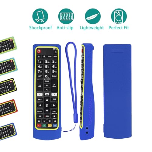 CHUNGHOP - جراب حماية سيليكون لجهاز التحكم عن بعد مقاوم للصدمات وقابل للغسل ولطيف على البشرة مع حلقة متوافق مع تلفزيونات ال جي الذكية AKB75095307 وAKB75375604 وAKB75675304 بلون أزرق وأصفر من تشونجوب