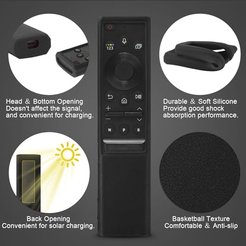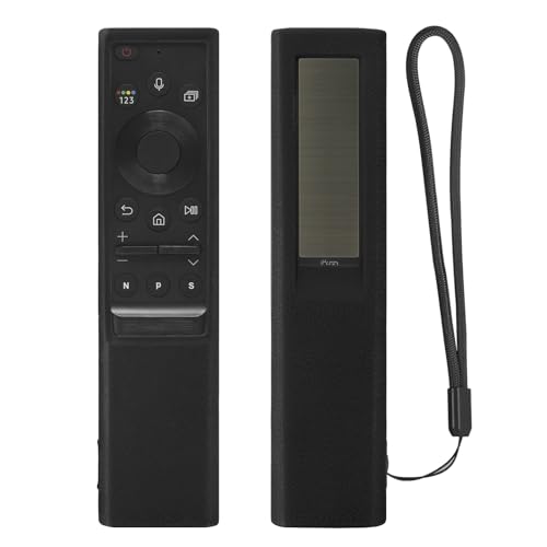 CHUNGHOP - حافظة حماية سيليكون لجهاز التحكمن بعد الصوتي بالخلايا الشمسية لتلفزيون سامسونج الذكي BN59-01363 BN59-01357 بتصميم قابل للغسل ومضاد للصدمات مع حبل صغير لتجنب الفقدان، لون أسود