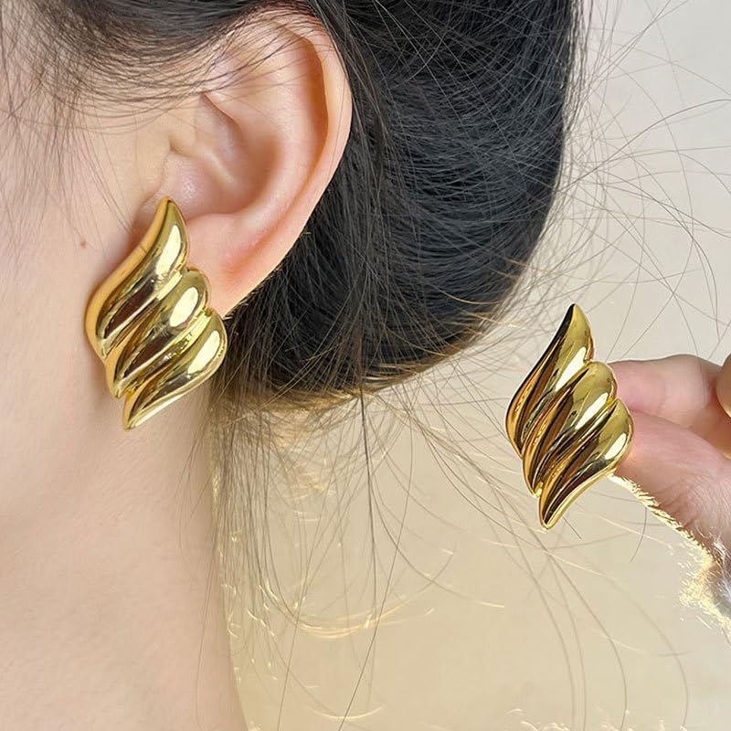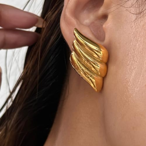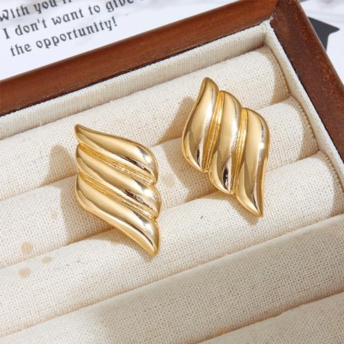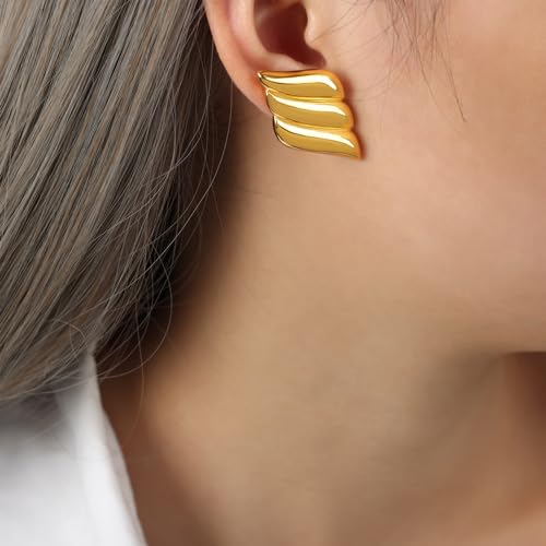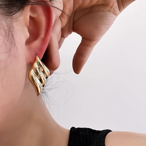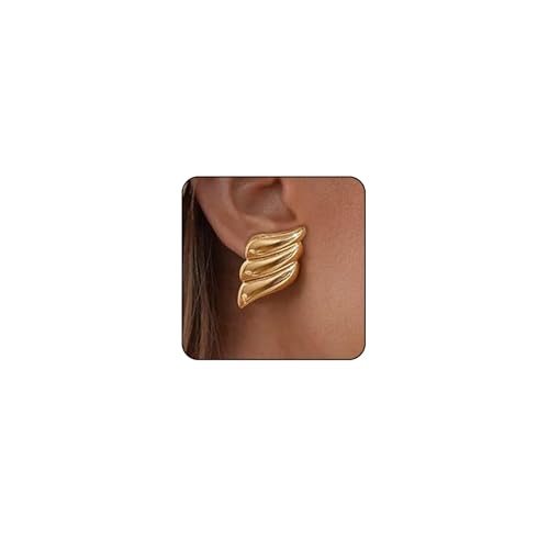 ONBRIG - حلقان فضية مكتنزة بلون ذهبي للنساء حلقان كبيرة عريضة حلقان ذهبية كبيرة حلقان فضية مكتنزة مجوهرات عصرية بتصميم هندسي