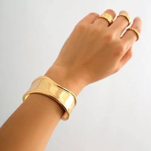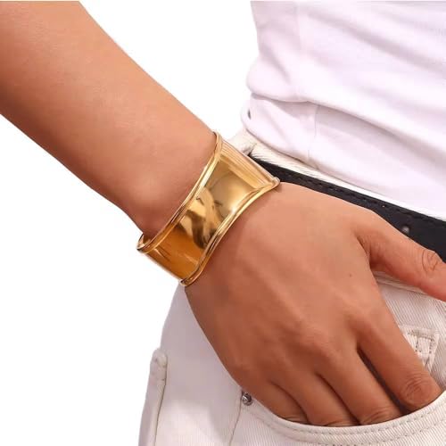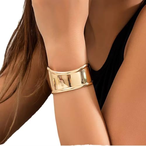 Generic - سوار عريض ذهبي عريض مفتوح للنساء، مجوهرات جريئة وبسيطة، اكسسوار ذراع للحفلات او الملابس الكاجوال