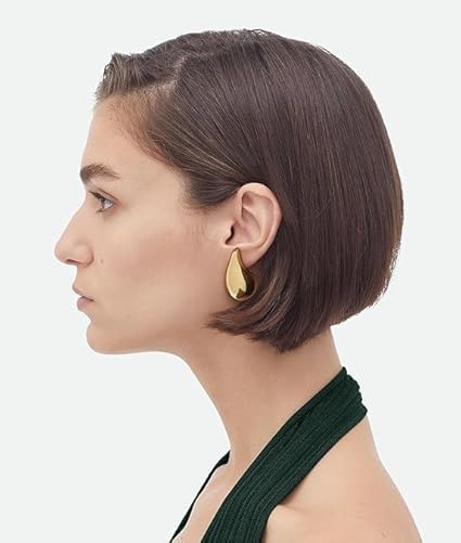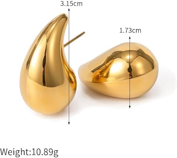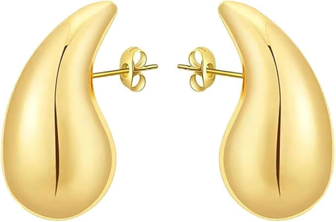 Generic - حلقان حلقية ذهبية وفضية مكتنزة للنساء خفيفة الوزن بتصميم قطرة ماء مجوفة على شكل فيونكة، حلقان لؤلؤ مضادة للحساسية، حلقان عصرية مميزة