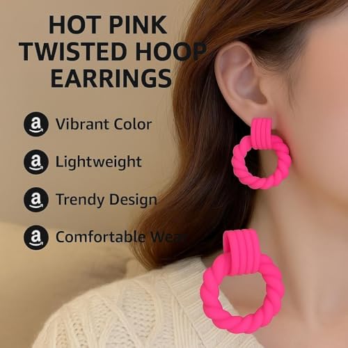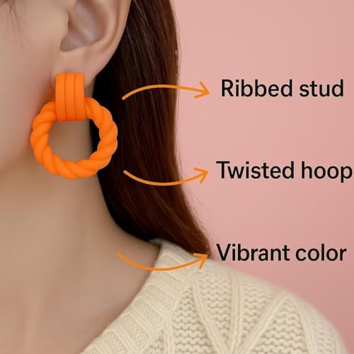 Generic - اقراط راتنج مكتنزة - نمط حلقة ملتوية عصرية مع لمسة نهائية زاهية متعددة الالوان، هيكل خفيف الوزن، مثالية لاطلالات الموضة، مقاس 52 ملم × 35 ملم لارتداء متعدد الاستخدامات