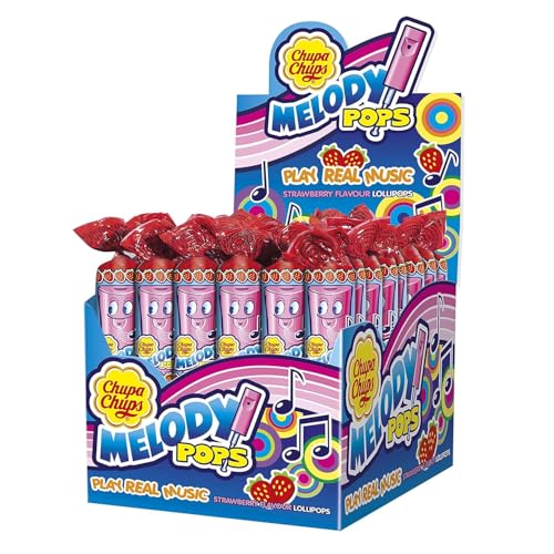 DECADENT FOODS - مصاصات شوبا تشوب ميلودي بوبس، مصاصات لولي بوب بنكهة الفراولة، صندوق عرض الحلوى الموسيقية 48 قطعة، كل قطعة 15 جم