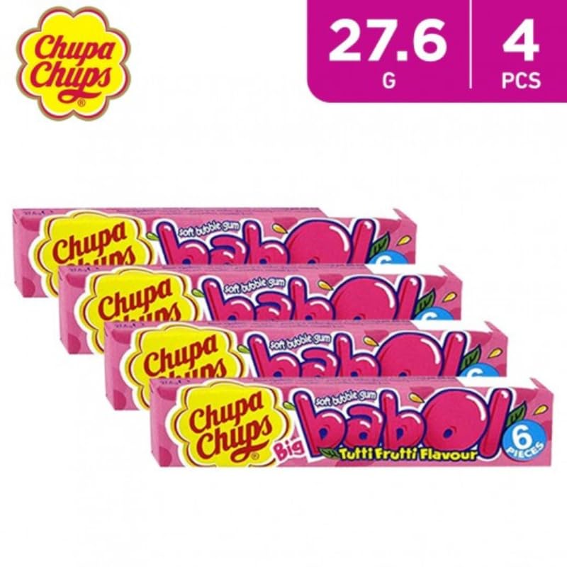 Generic - علكة فقاعات تشوبا تشبس بيج بابول بنكهة توتي فروتي، 4 × 27.6 جم