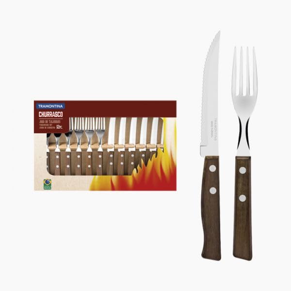 - مجموعة فاخرة: مجموعة شوك وسكاكين لحم مكونة من 12 قطعة تتميز بمقابض خشبية متينة وشفرات من الفولاذ المقاوم للصدأ لتجربة طعام أصلية من تشوراسكو
