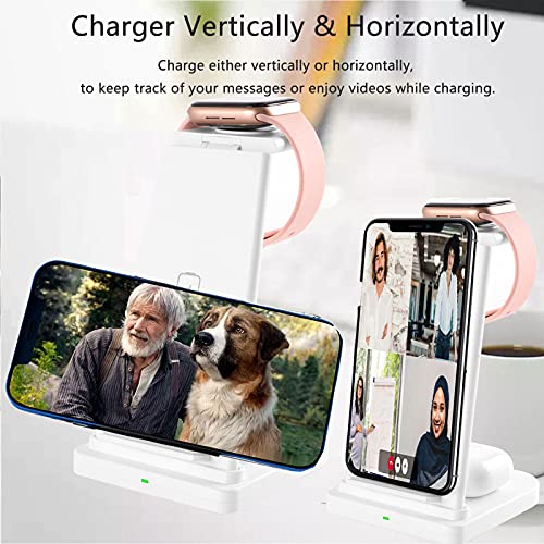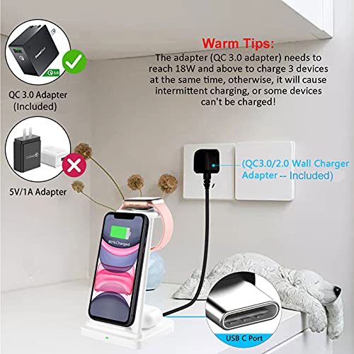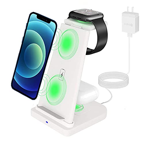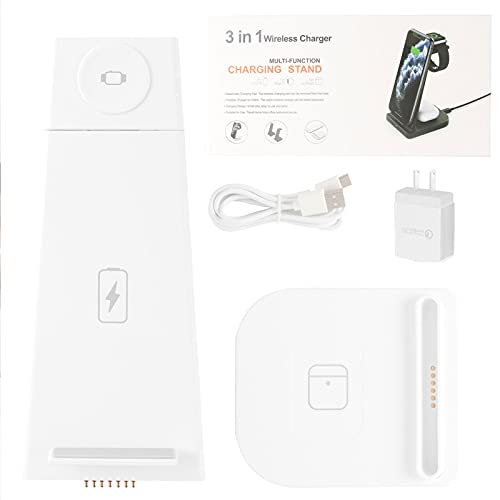 CHUYI - شاحن لاسلكي من تشوي معتمد كيو اي، 3 في 1 للشحن السريع للسماعات ايربودز 2/برو، اي واتش سيريز برو اس ايي/6/5/4/3/2، ايفون 11/11 برو/11 برو ماكس/ اكس اس ماكس/اكس ار /اكس اس/اكس /8/8 بلس (مع محول) - ابيض