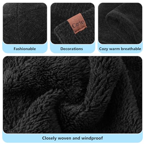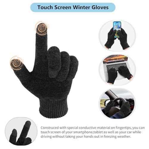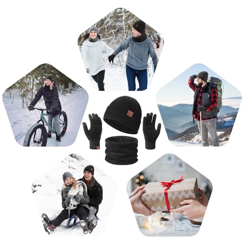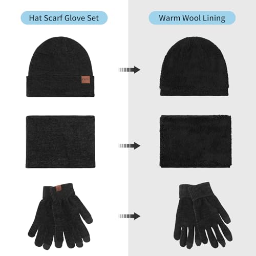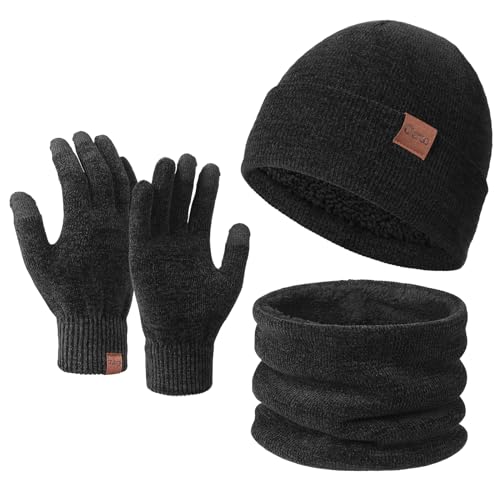 Cierto - سكارف وجوانتي وطاقية صغيرة للشتاء من سيرتو: جوانتي محبوك دافئ مناسب لشاشات اللمس، مبطن بالصوف بأساور صغيرة.