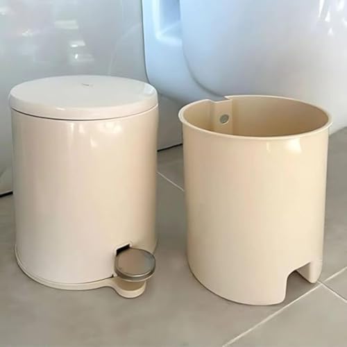 Generic - سلة مهملات من الفولاذ المقاوم للصدأ بغطاء أملس وسلة داخلية، مناسب للحمام والمطبخ والمكتب من سيجو، 28 × 20 سم (الارتفاع × العرض)، سعة 6 ل، بيج