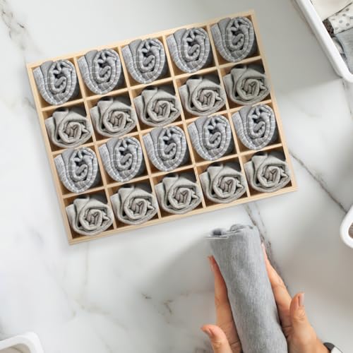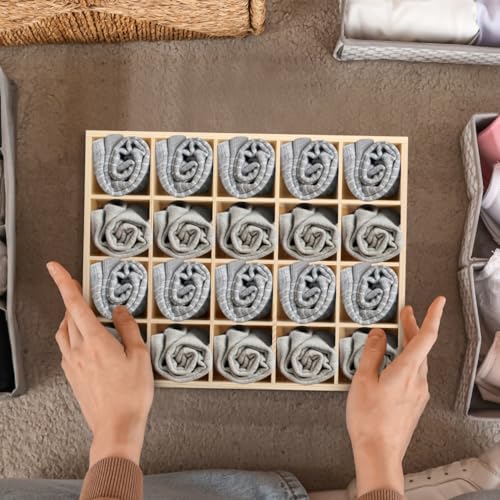 Ciieeo - منظم أدراج خشبي لتنظيم الشرابات مكون من 20 قطعة من سييو، فواصل خشبية لتخزين الشرابات البناطيل الداخلية والحرف اليدوية