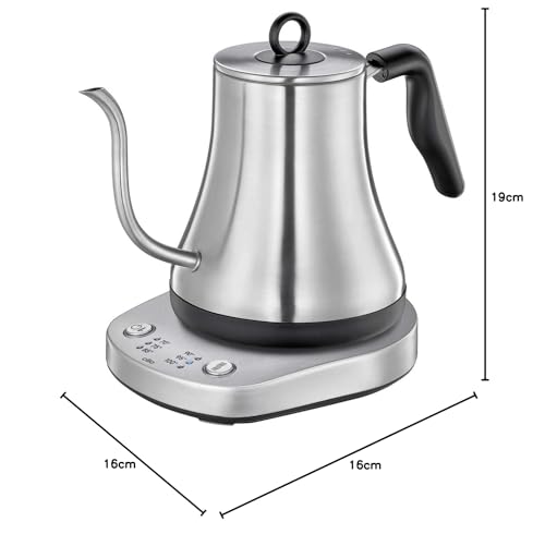 Cilio - غلاية كهربائية من سيليو بلون ستانلس ستيل، مصنوعة من الستانلس ستيل، مع تحكم في درجة الحرارة وإيقاف تلقائي ووظيفة الحفاظ على السخونة، سعة 0.8 لتر