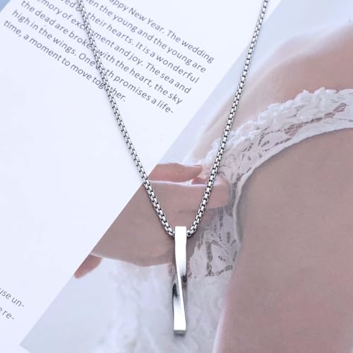 Cimenexe - طوق ضيق بسلسلة قضيب ملتوي بوهيمي للنساء، سلسلة بقلادة قضيب حلزوني فضية، سلسلة بقضيب معدني أفقي، مجوهرات عقد قضيب ملتوي بسيط من سيمنكس