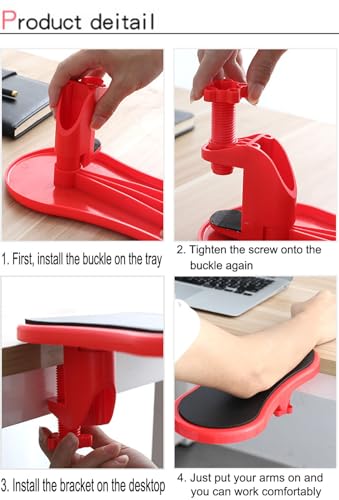 CIMERAC - مسند ذراع للمكتب، مسند معصم لمسند ذراع الكمبيوتر، وسادة مسند ذراع للكمبيوتر قابلة للتعديل لتخفيف التوتر والقضاء على الالم (احمر)