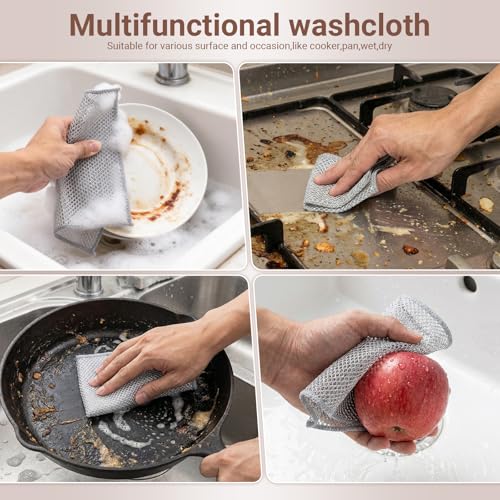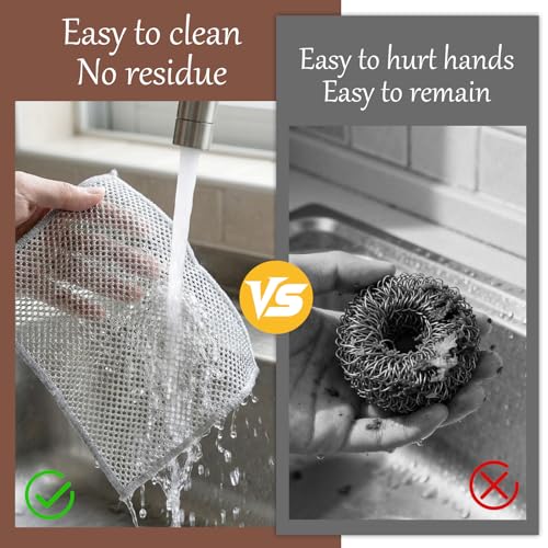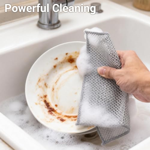 - حماية السطح غير قابلة للخدش: تتميز أقمشة الأطباق السلكية هذه بنسيج دقيق يزيل الأوساخ الصعبة دون خدش الأسطح الحساسة. مثالية لأواني الطبخ غير اللاصقة والمواقد الزجاجية وأطباق السيراميك. ينزلق قماش الأطباق الشبكي الفضي بسلاسة مع إزالة البقع بأمان.